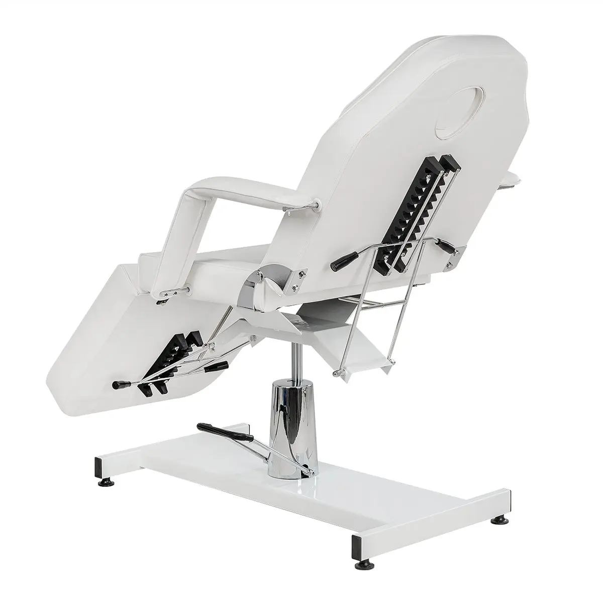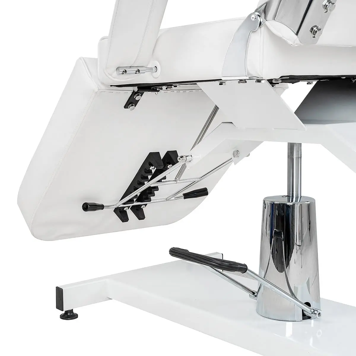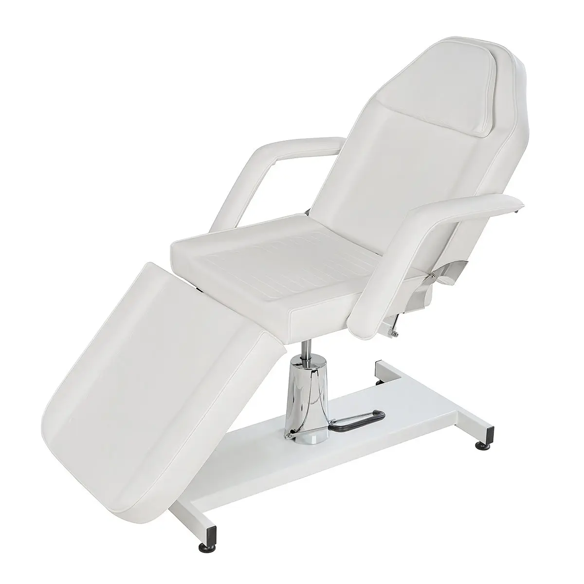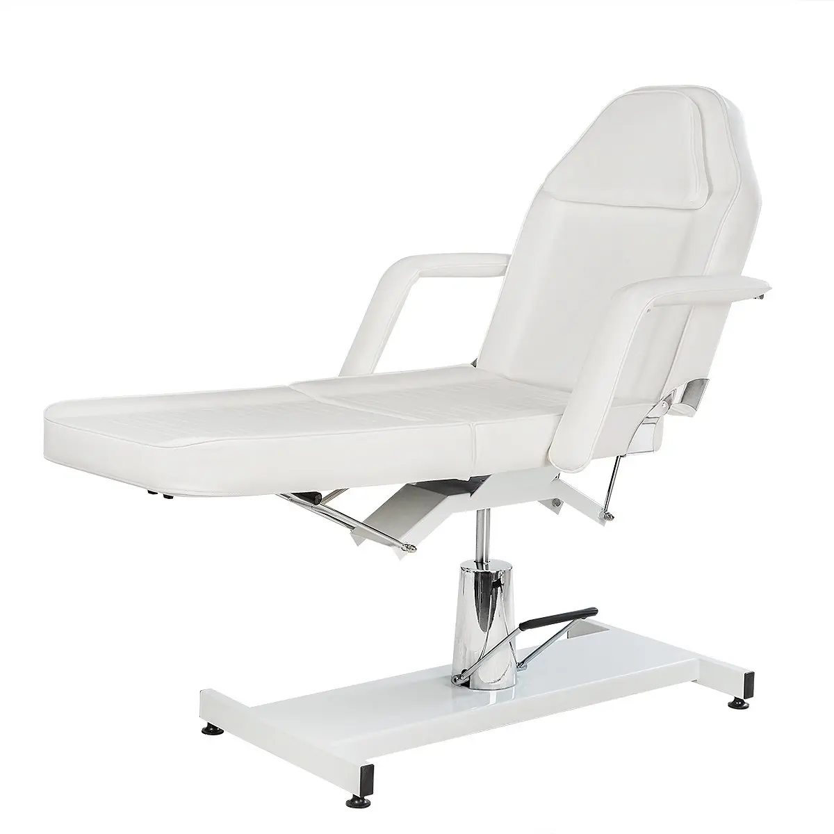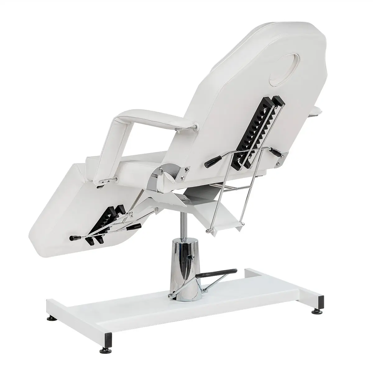 Стационарная косметологическая кушетка МД-319 на гидравлике с эргономичным сиденьем и мягкими съемными подлокотниками. Модель является трех секционной, с регулируемой спинкой и ножной частью. При помощи удобного механического управления специалист может быстро и без усилий подобрать оптимальное положение спинки, в зависимости от процедуры. Регулируемая ножная часть позволяет опустить или поднять ноги клиента. Обивка кресла-кушетки выполнена из мягкой матовой экокожи и плотного поролона оптимальной толщины, чтобы клиент с любой массой тела смог удобно расположиться и расслабиться, получая удовольствие от процедур.