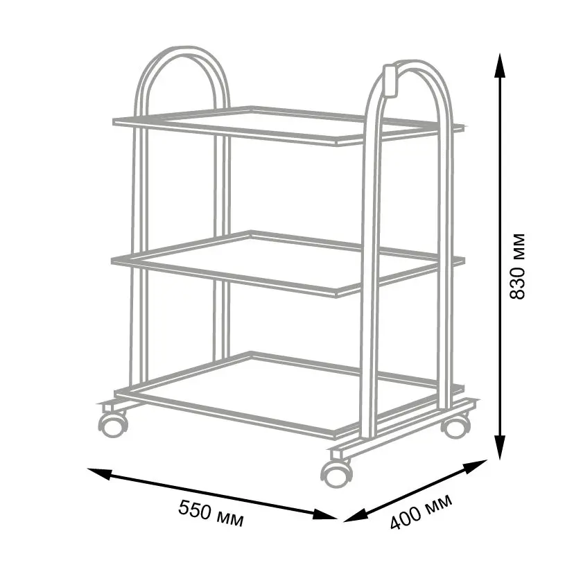 Комплектация: металлический каркас, три полки с бортиками, четыре колеса.