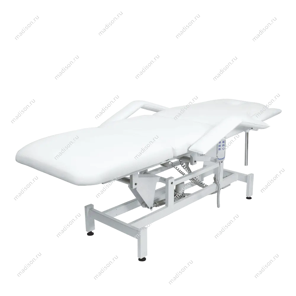 Кушетка массажная МД-849 (Элегия-3А) (электропривод, 3 мотора) – это профессиональное оборудование от компании МЭДИСОН. Она разработана для применения в массажном или косметологическом кабинете высокого уровня. Мягкая часть кушетки разделена на три сегмента: сиденье, спинка, элемент для ног. Это значительно повышает комфорт при использовании и обеспечивает необходимую функциональность во время работы. В спинке есть специальный вырез для лица. Для удобного расположения рук по время массажа предусмотрены навесные подлокотники, регулируемые по высоте.