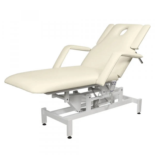 Комплектация: кушетка, подлокотники, съемная подушка, металлические элементы каркаса и основания, электропривод с двумя электромоторами и дистанционным пультом управления.