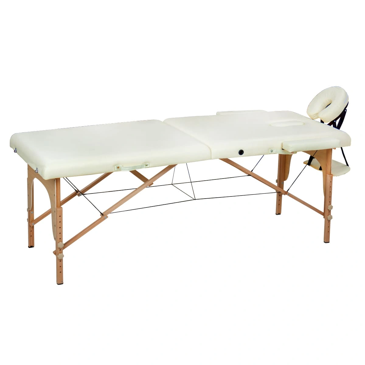 Высота массажного стола регулируется, что позволит мастеру подобрать оптимальное положение для проведения процедур. Съемный подголовник поможет увеличить длину кушетки. Для хранения и удобной транспортировки массажное оборудование легко складывается до размеров чемодана.
