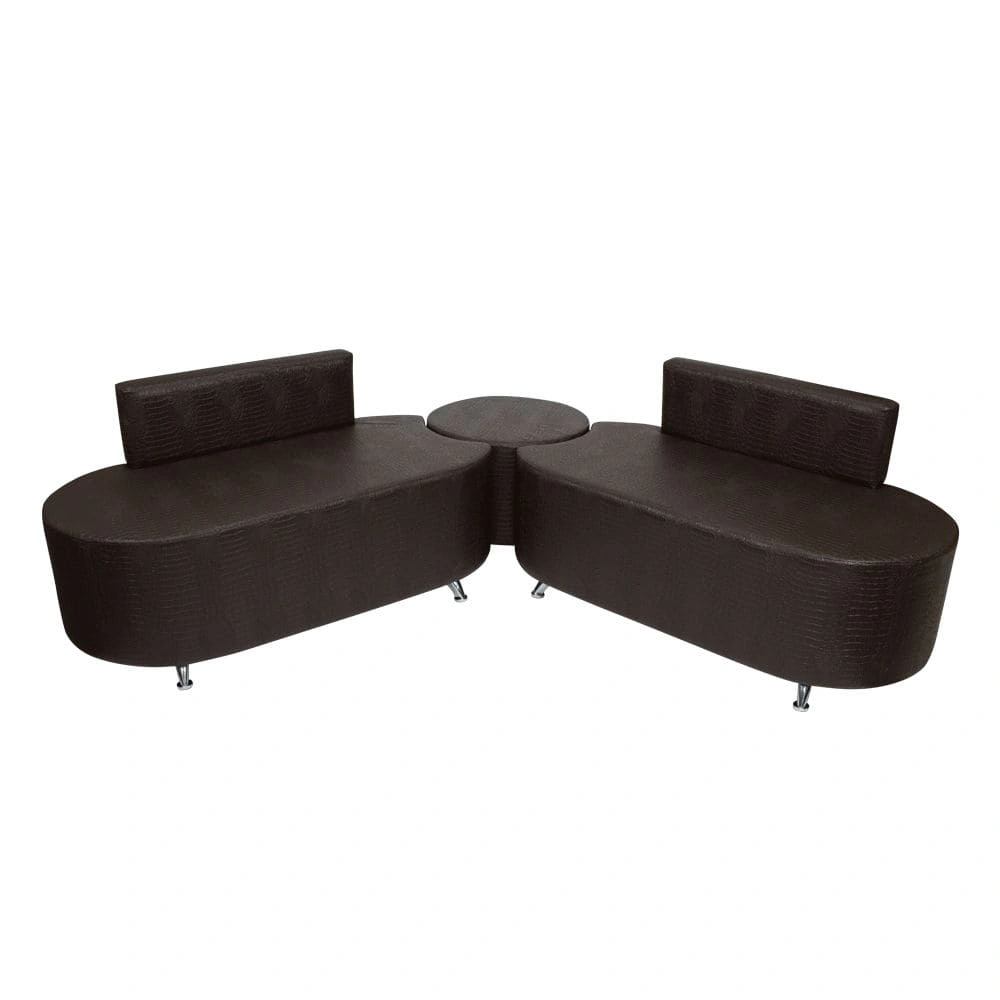 В комплект мебели для ожидания Милена входит два двухместных дивана Стелла и один пуфик Зен. Для установки пуфика предусмотрена специальная выемка. Диваны имеют устойчивые ножки из хромированного металла и усиленный каркас. Обивка выполнена из экокожи высокого качества, которая не пропускает влагу, легко чистится и длительное время сохраняет свой первоначальный внешний вид. Купить комплект мебели для ожидания Милена Вы можете из наличия с черной матовой обивкой или под заказ с любым цветом обивки из предложенного каталога. Наша компания предлагает более 100 цветов экокожи с матовой, глянцевой, лаковой и текстурной поверхностью.