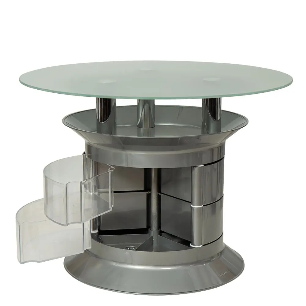 Журнальный столик GiroCo Benito Plus gray выполнен в необычном дизайне. Оборудование подойдет для хранения интересных журналов и листовок или как элемент декора. Компактная мебель для холла достаточно вместительна благодаря шести ящичкам. Мобильность столика достигнута с помощью маневренных колес.