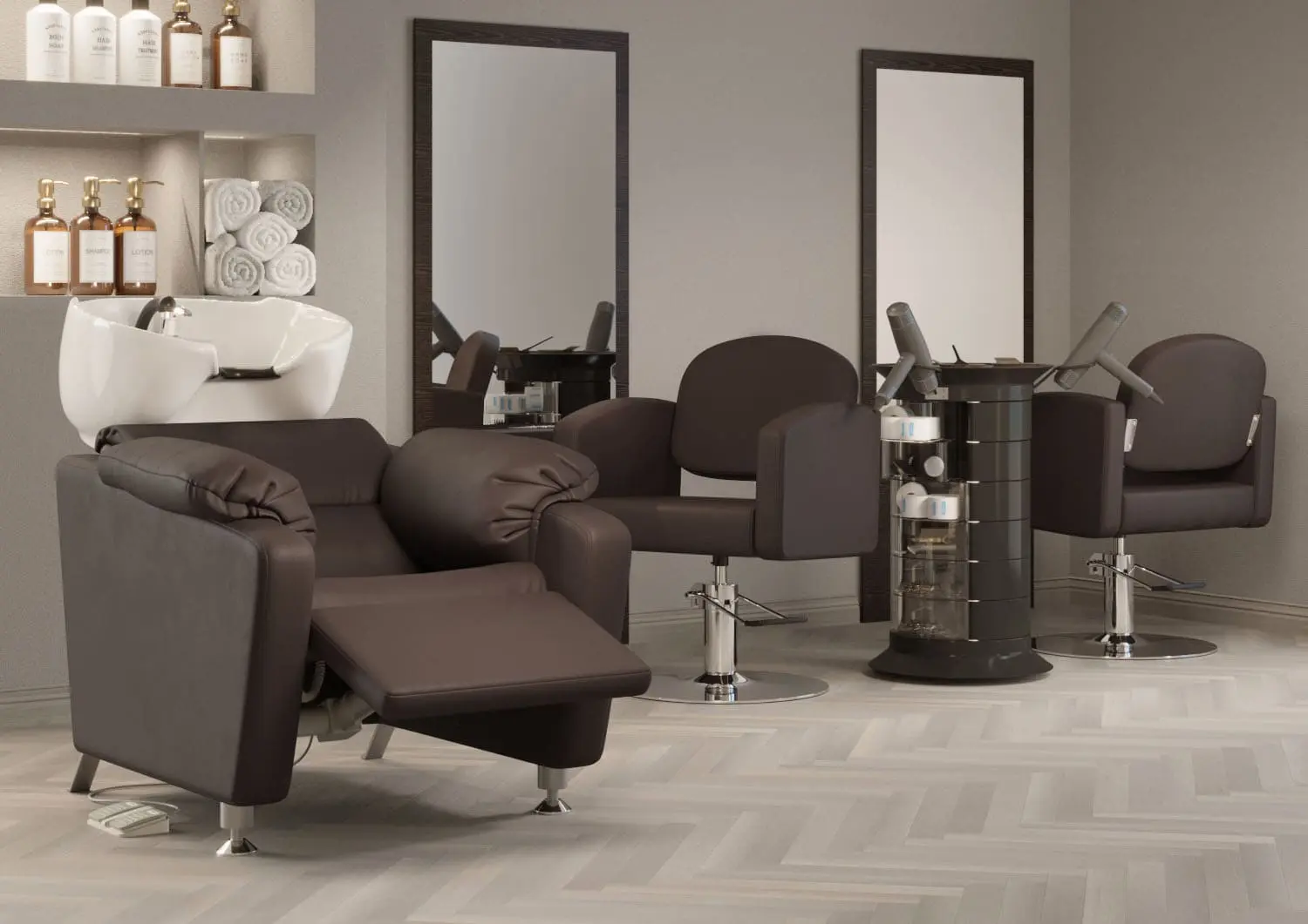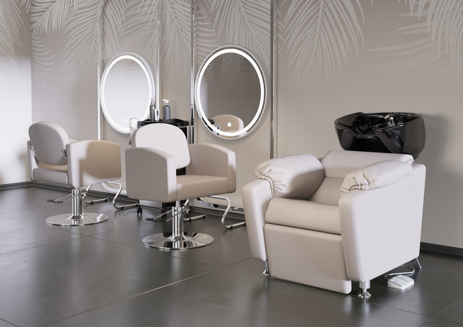 Удобное сидение с мягкой спинкой в сочетании с подлокотниками помогут обеспечить комфорт каждому клиенту. В качестве наполнителя применён плотный поролон, который не образует вмятин в течение длительного срока эксплуатации. Для обшивки использована прочная экокожа, устойчивая к разрывам, растягиванию и протиранию. Уход за поверхностью необычайно прост, потому что материал не впитывает влагу и грязь. Пыль с такой мебели можно удалить сухой текстильной салфеткой, а пятна от косметических продуктов стираются специальными моющими составами для кожи без хлора.
