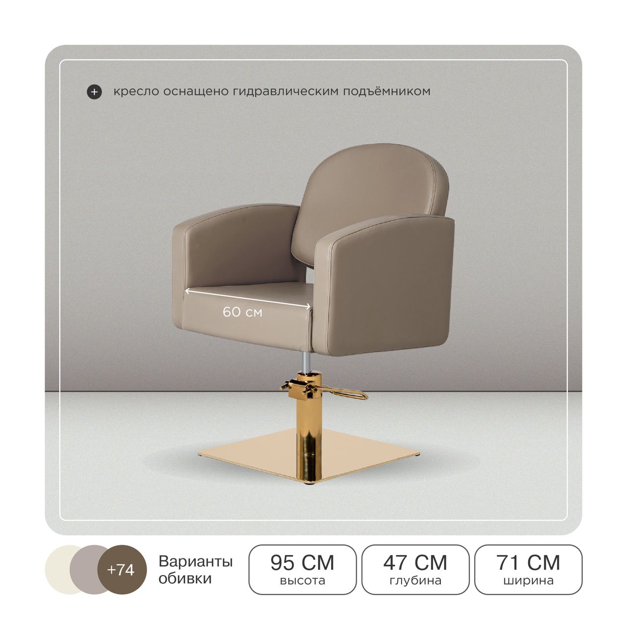 Каркас парикмахерского оборудования изготовлен из крепкого металла, что обеспечит долговечность и устойчивость кресла. Данная модель в базовом укомплектовании оснащена хромированным основанием в форме квадрата.