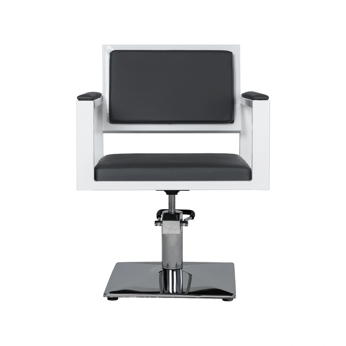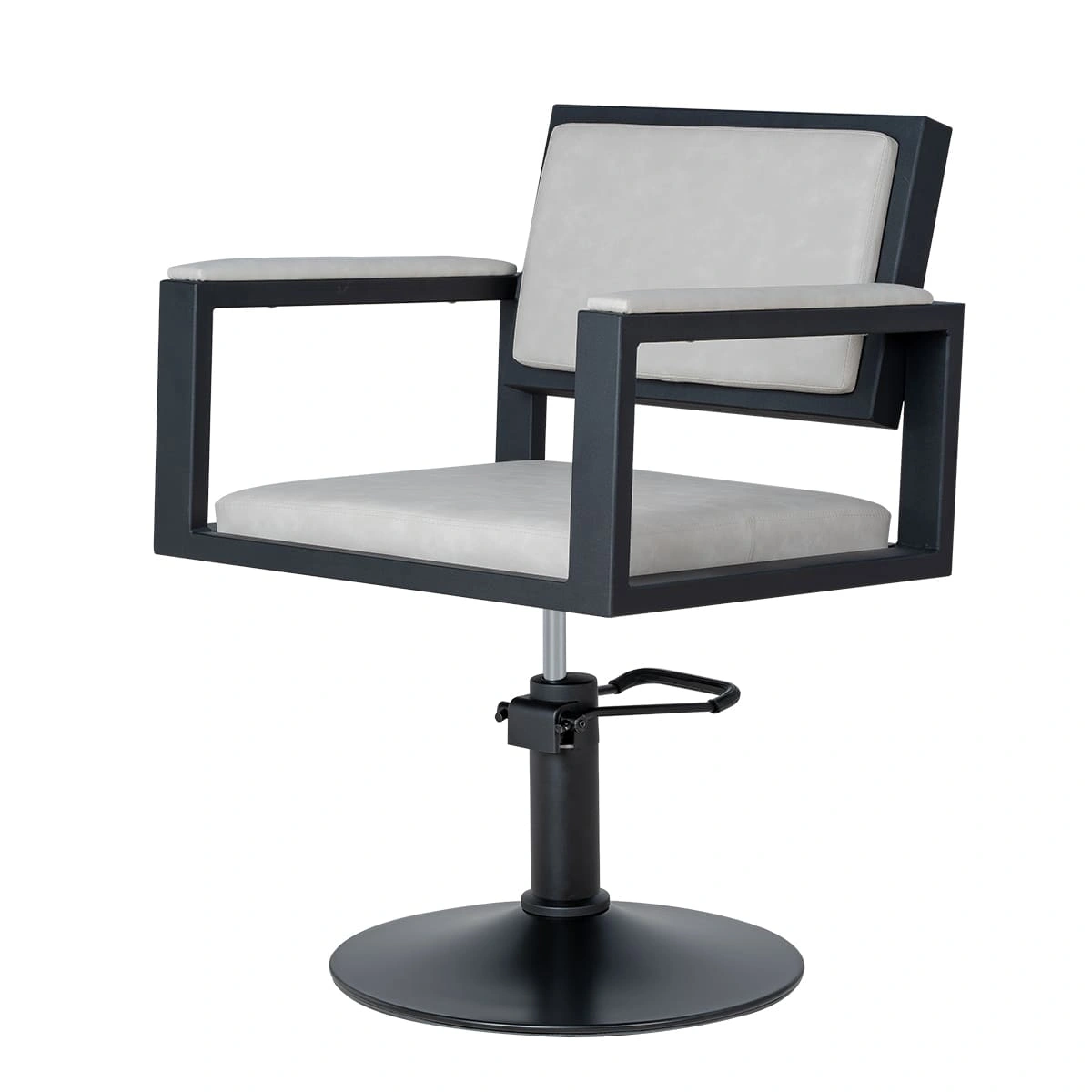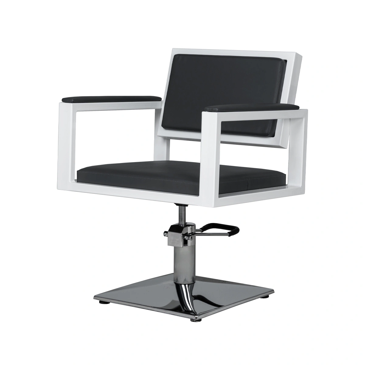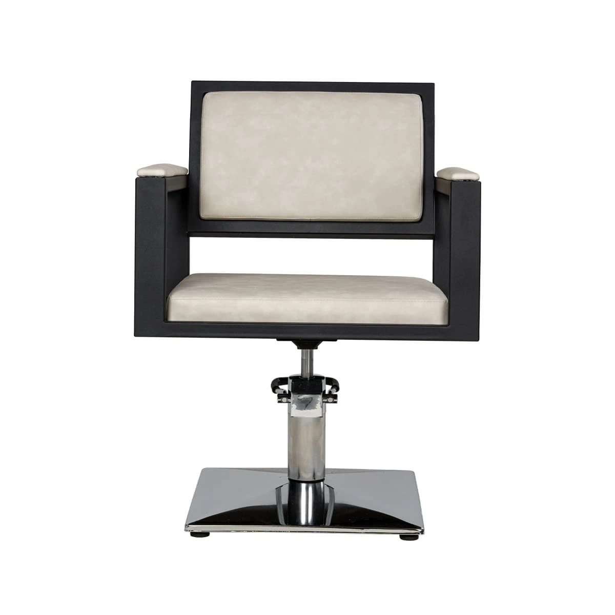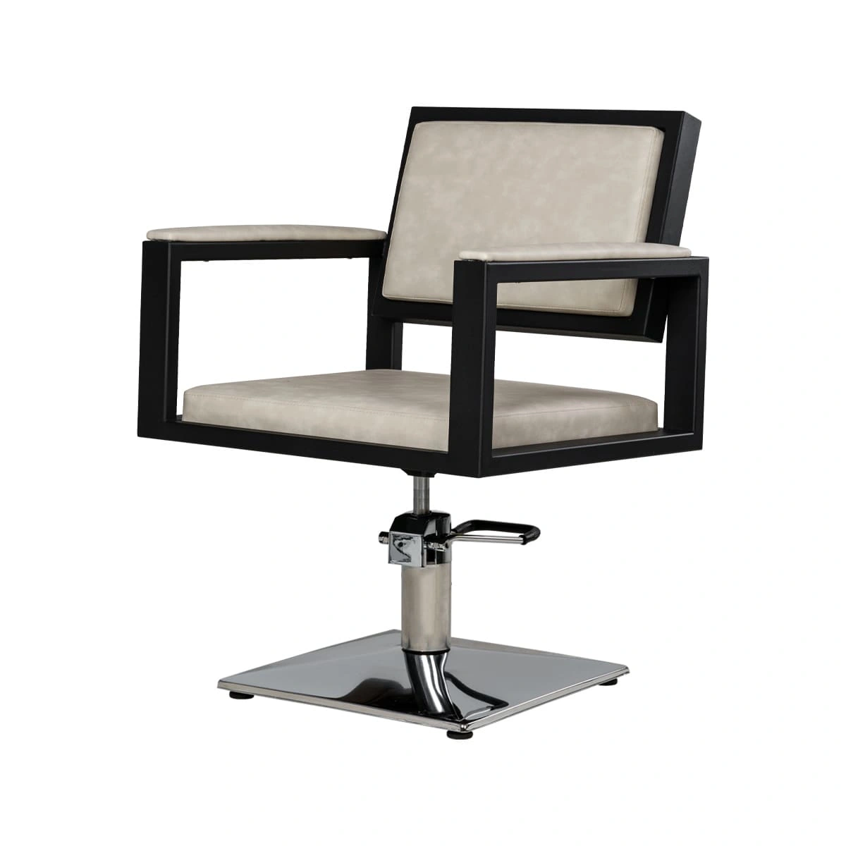 Для удобной работы мастера парикмахерское кресло оснащено мощным гидравлическим механизмом. С помощью этого подъёмника можно легко регулировать высоту сиденья, для большего комфорта клиента и мастера.
