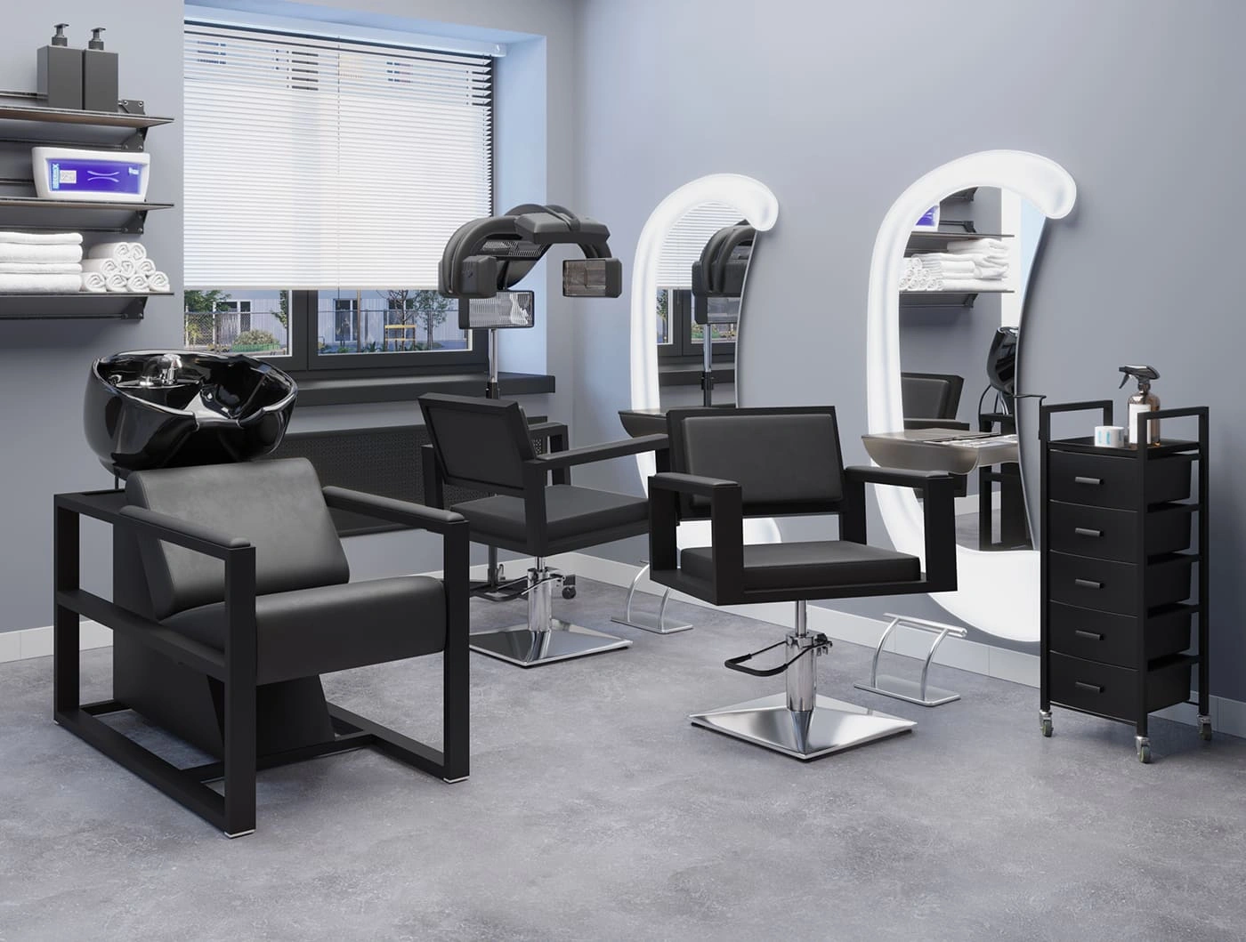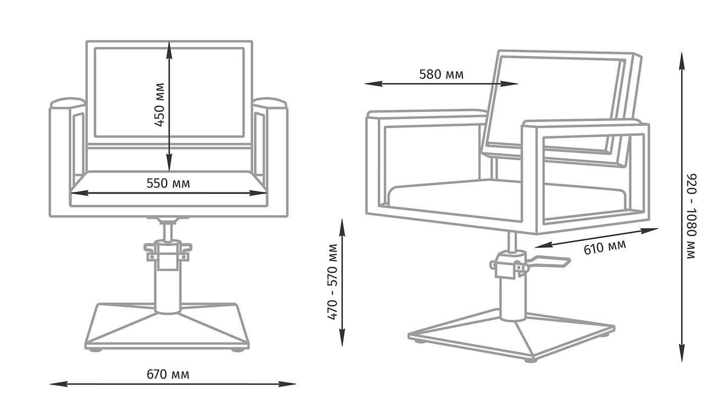 Удобное сиденье с мягкой спинкой в сочетании с подлокотниками обеспечат комфорт каждому клиенту. В качестве наполнителя применён плотный поролон, который не образует вмятин в течение длительного срока эксплуатации. Для обивки использована прочная экокожа, устойчивая к разрывам, растягиванию и протиранию. Уход за поверхностью необычайно прост потому, что материал не впитывает влагу и грязь. Пыль с такой мебели можно удалить сухой текстильной салфеткой, а пятна от косметических продуктов стираются специальными моющими составами для кожи без содержания хлора.