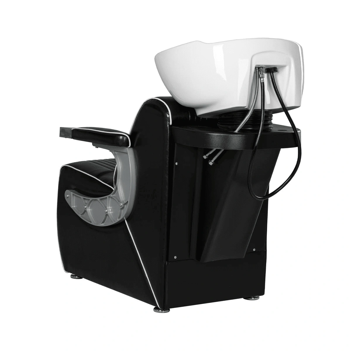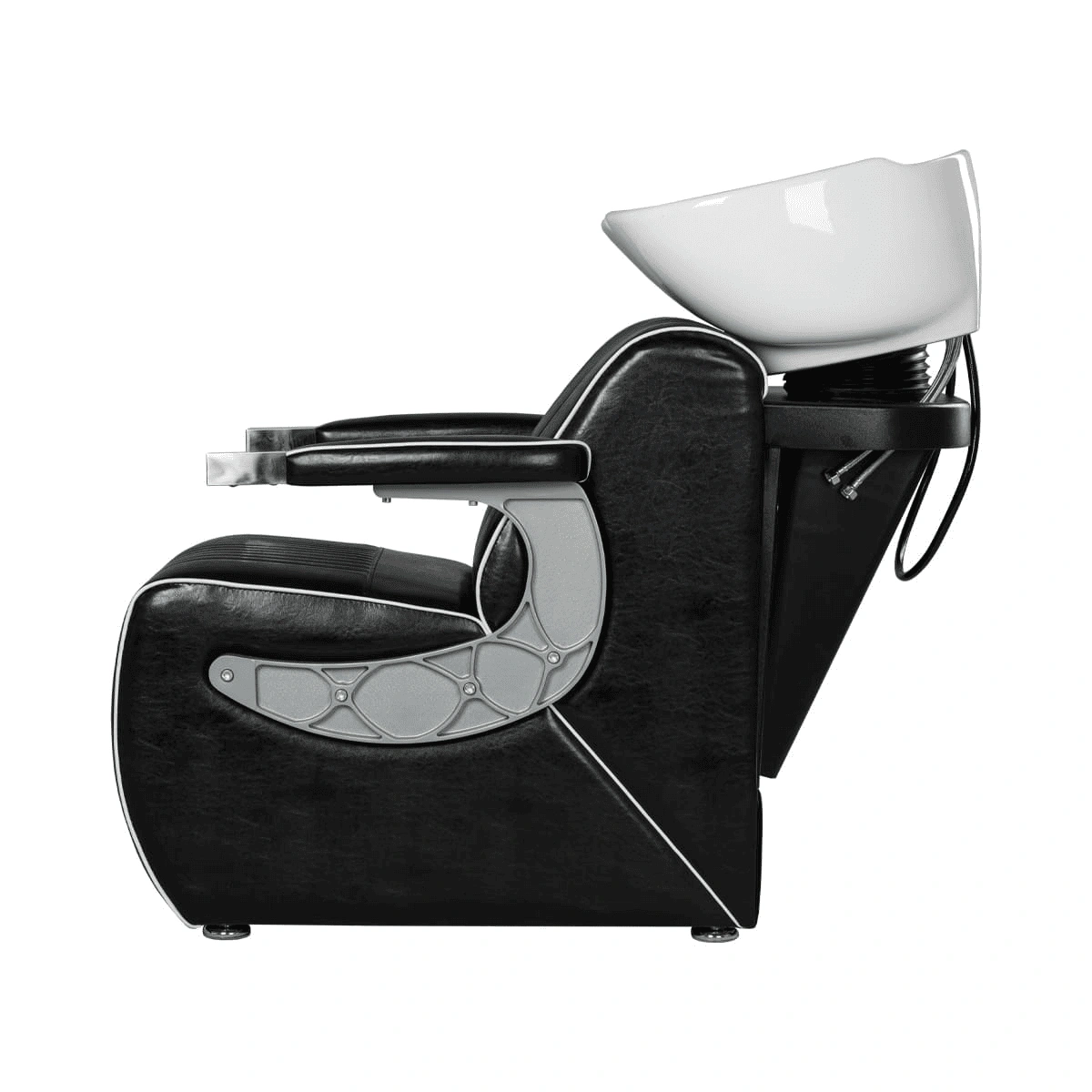 Парикмахерская мойка Челленджер отличается стильным дизайном. Оригинальная форма кресла, черная керамическая раковина, обивка из экокожи с рифлением – все это смотрится солидно и стильно. Конструкция мойки максимально продумана для удобства клиента и мастера. Поролоновый наполнитель долго держит форму и не теряет свойств на протяжении всего срока эксплуатации. Экокожа устойчива к воздействию влаги, поэтому ее можно очищать от загрязнений обычной влажной тряпкой.