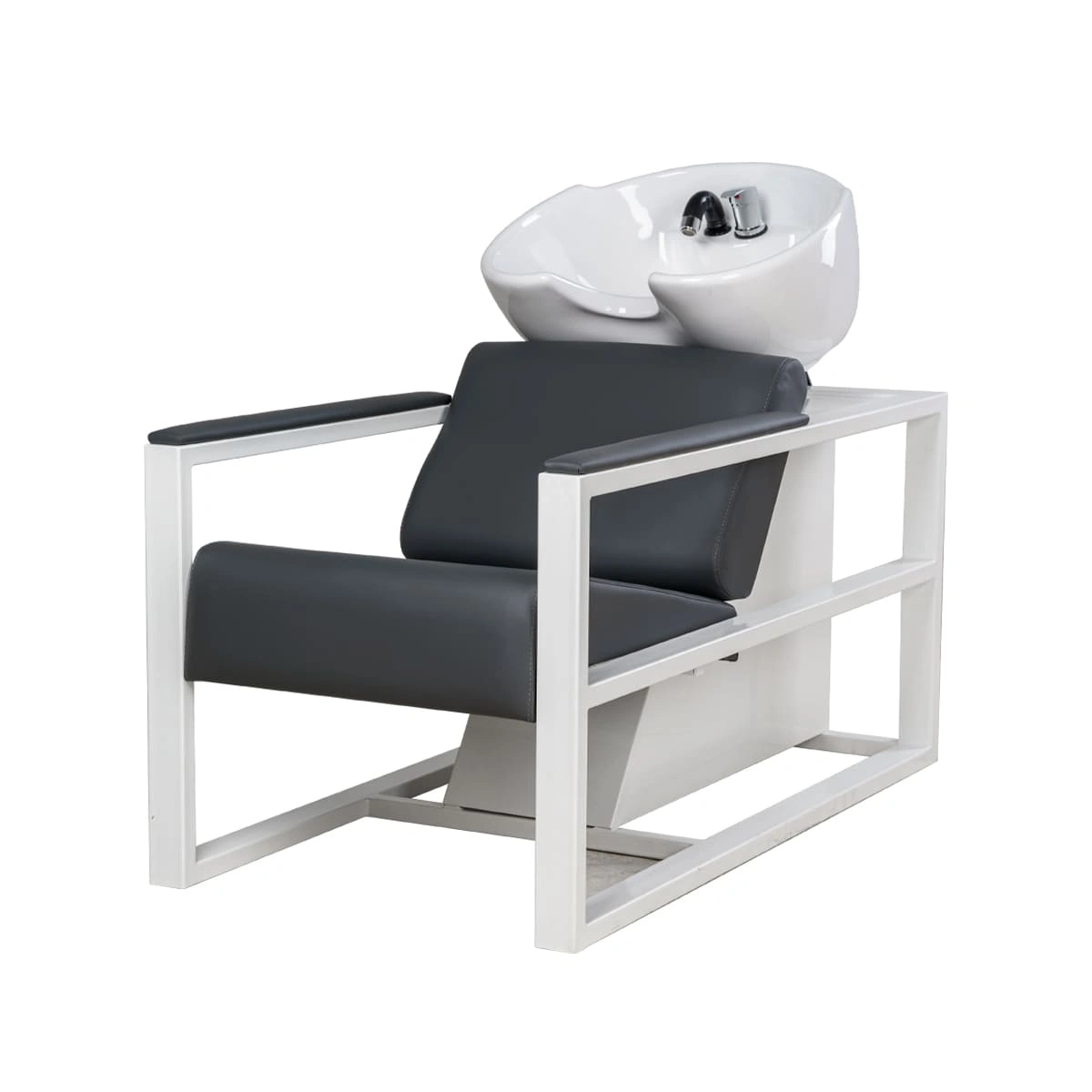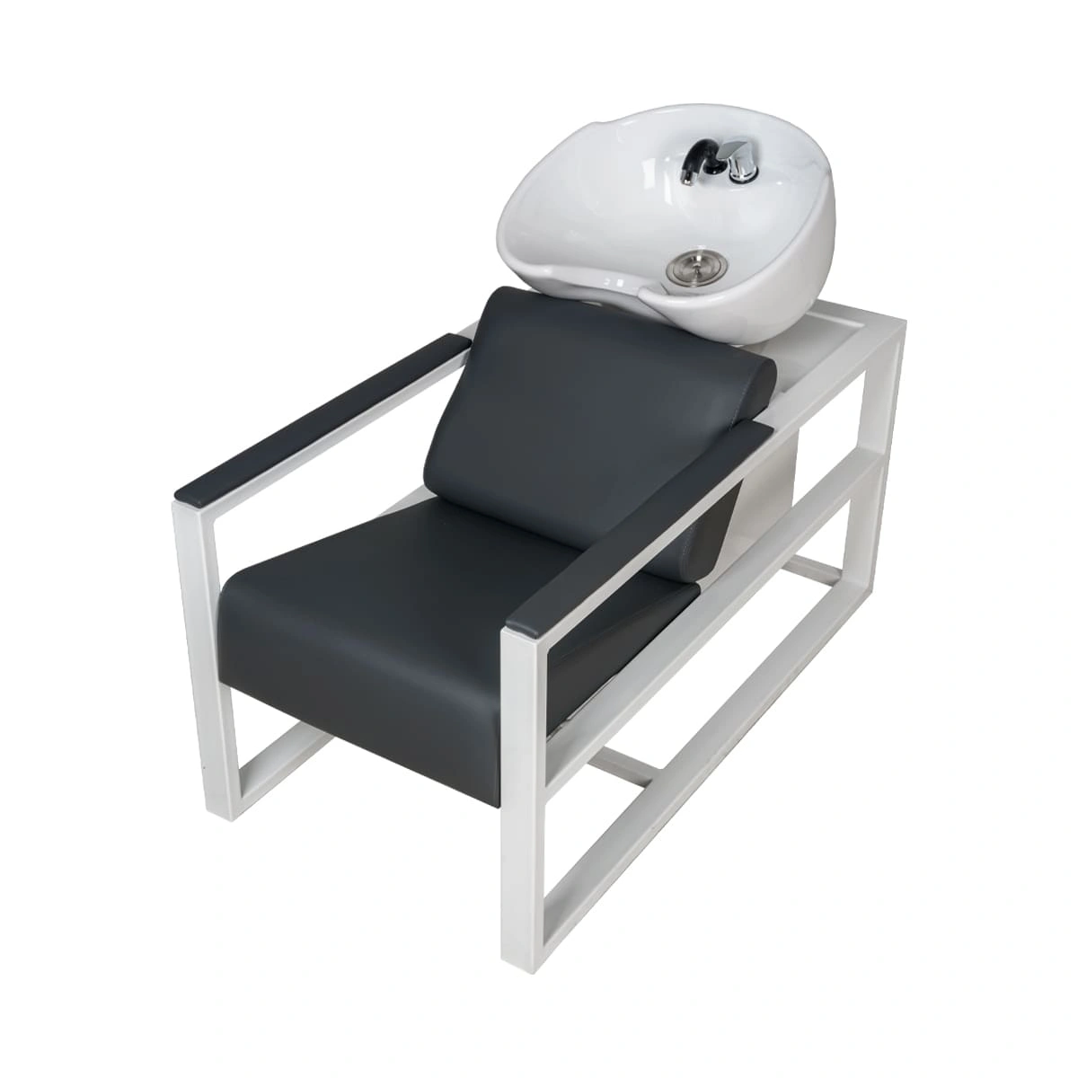 Парикмахерская мойка Дуглас на белом каркасе – это профессиональное оборудование с отличными функциональными возможностями. Она разработана для бьюти салонов и парикмахерских высокого уровня. Данная модель оснащена красивой глубокой раковиной из черной или белой керамики на выбор, которая идеально подходит для мытья длинных и средних волос. В комплектации также предусмотрен набор сантехники: смеситель, удобный душ, слив. Каркас мойки изготовлен из металла со сверхпрочным порошковым покрытием белого цвета.