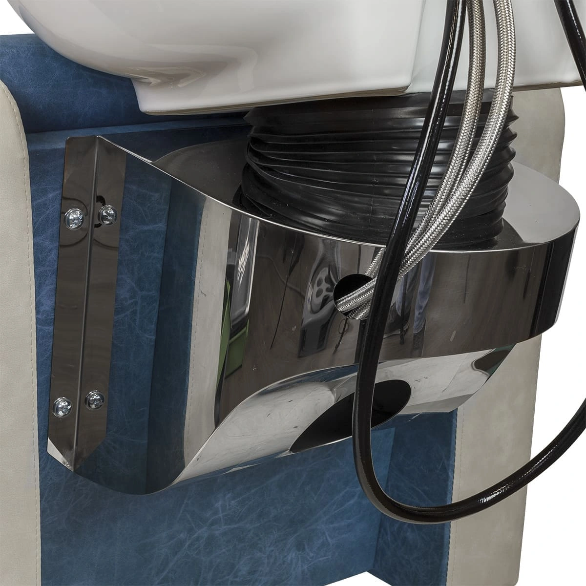 Удобная парикмахерская мойка МД-124 с комфортным мягким креслом станет практичным дополнением рабочей зоны в парикмахерском зале. Основание под раковину металлическое в хромированном кожухе. К его верхней части крепиться механизм наклона, а во внутреннем пространстве проходят трубы водопровода и слива. В комплект поставки входит глубокая раковина с комплектующими. Керамика белого или черного цвета, на выбор. Также по желанию можно купить парикмахерскую мойку МД-124 с раковиной из литьевого мрамора (цвета: красный, серый, зеленый, фиолетовый).