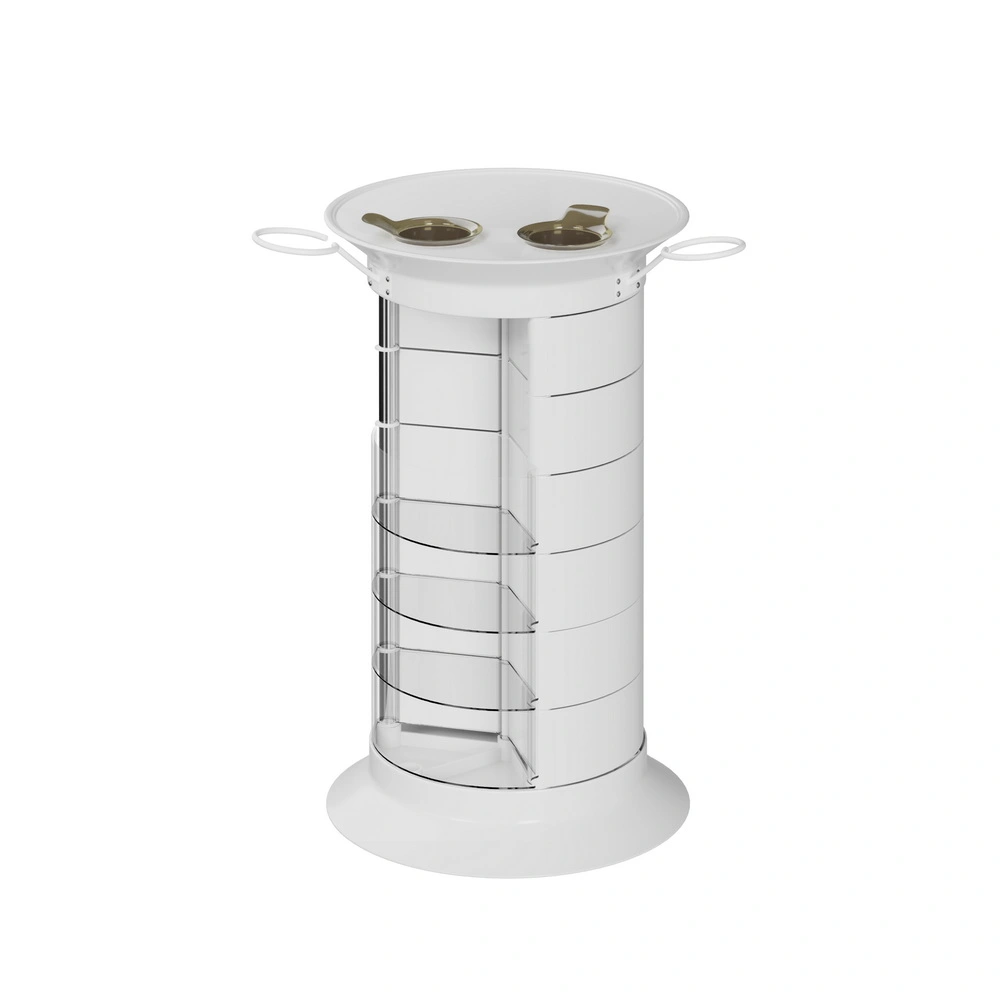 Парикмахерская тележка GiroCo Ofelia Plus имеет один вертикальный ряд прозрачных ящиков.