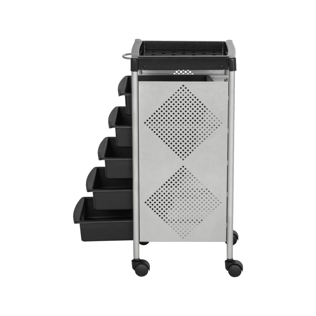 Комплектация: каркас, боковины, 5 ящиков, полка, фенодержатель, поворотные колесики.