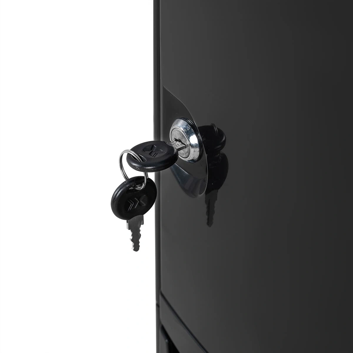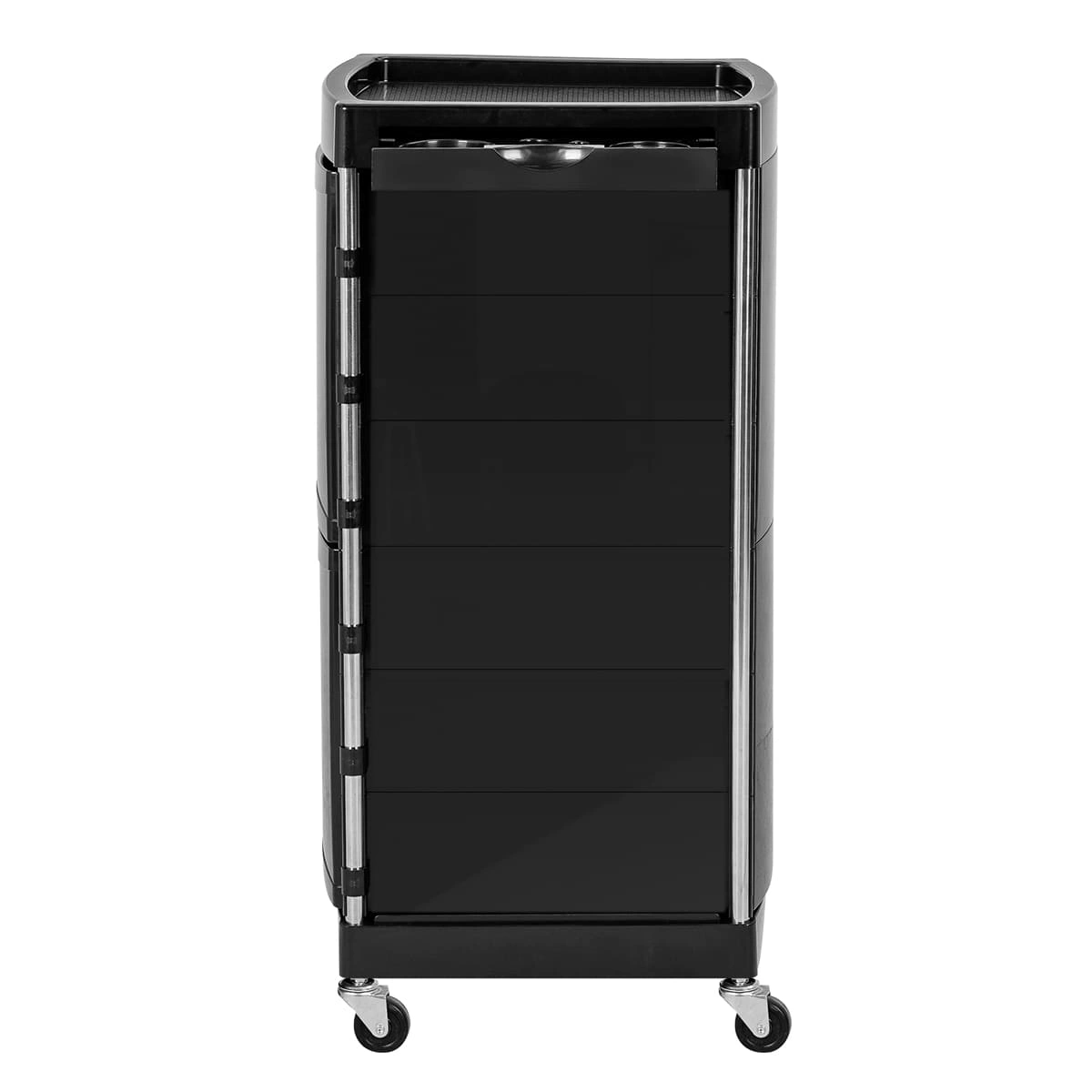 У парикмахерской тележки Т-165 просторная верхняя полочка с функциональными выдвижными подставками для фена, брашингов и ёмкостей, 6 выдвижных вместительных ящиков. Закрытые боковины и дверцы с замком, обеспечивают защиту от влаги, пыли, волос и красящих элементов!