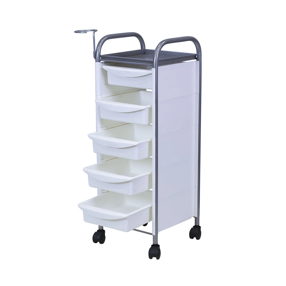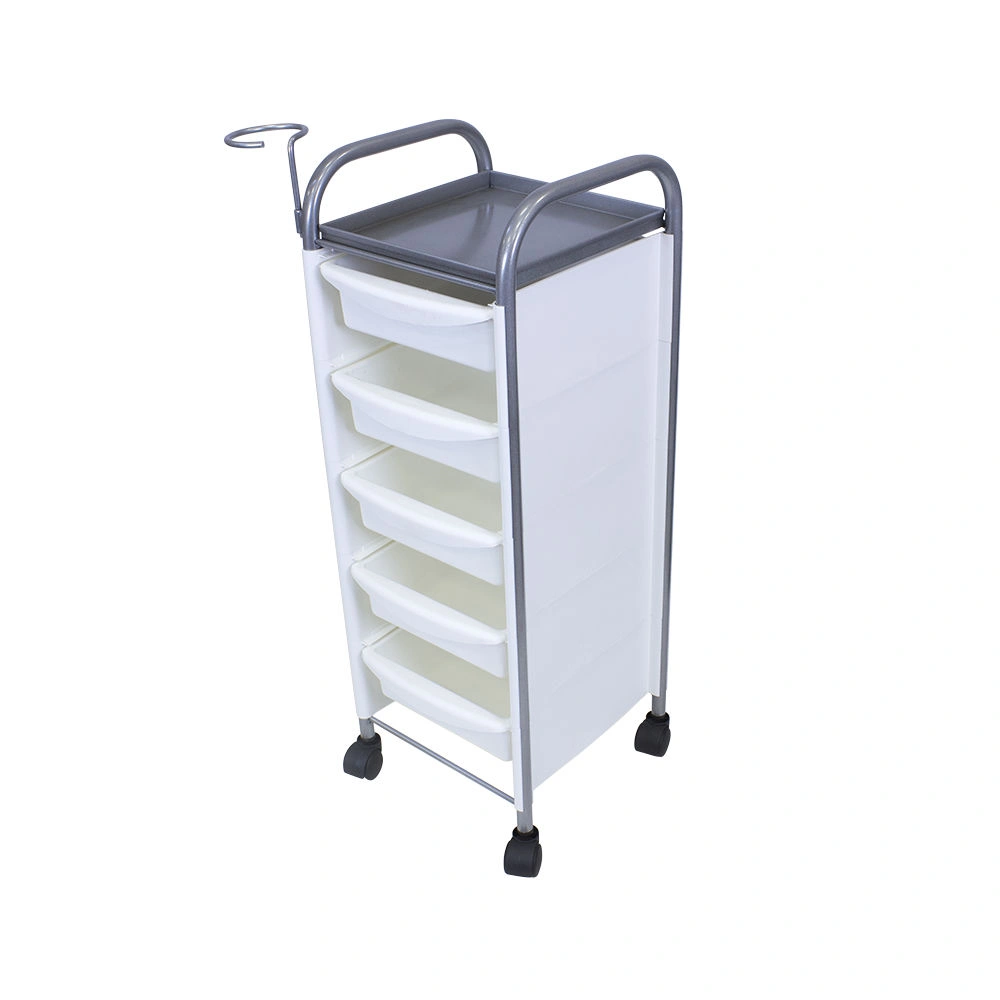 Комплектация: каркас из металла на пластиковых колесах, боковые пластиковые панели, выдвижные ящики, верхняя полка, металлический держатель для фена.
