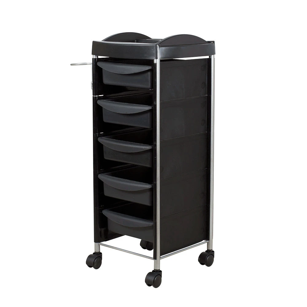 Удобная и вместительная тележка парикмахерская М-03 Next черная позволит мастеру организовать рабочее пространство и повысить эффективность работы. Каркас металлический, со специальным влагозащитным покрытием. Боковины состоят из отдельных пластиковых панелей, которые предотвращают выпадение содержимого из ящичков и обеспечивают эргономичность тележки. Верхняя крышка в виде функциональной полочки с отделениями и выдвижные ящики так же изготовлены из ударопрочного пластика в черном цвете. В ящичках специалист сможет разместить всё необходимое для работы: инструменты, оборудование, косметические средства, приспособления и прочее.