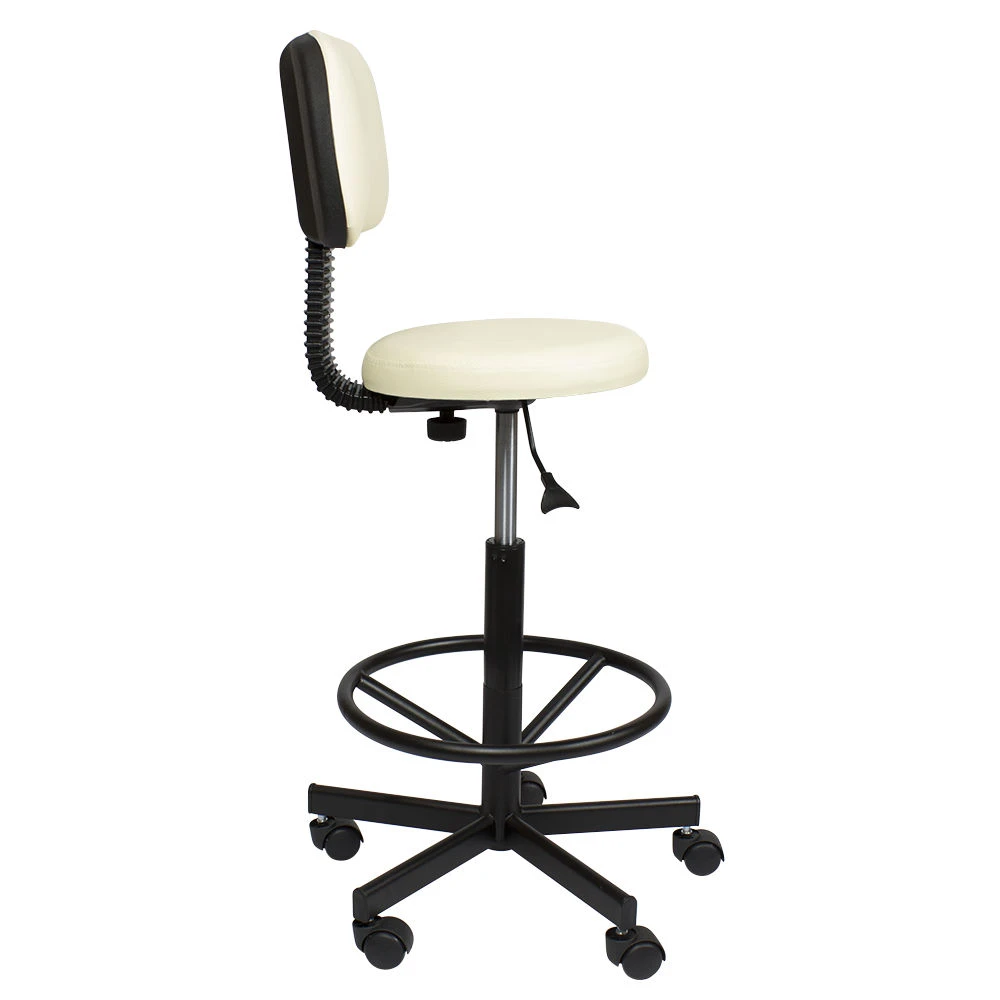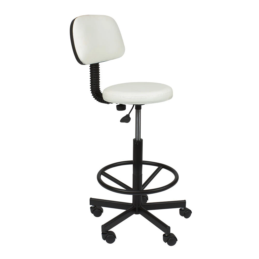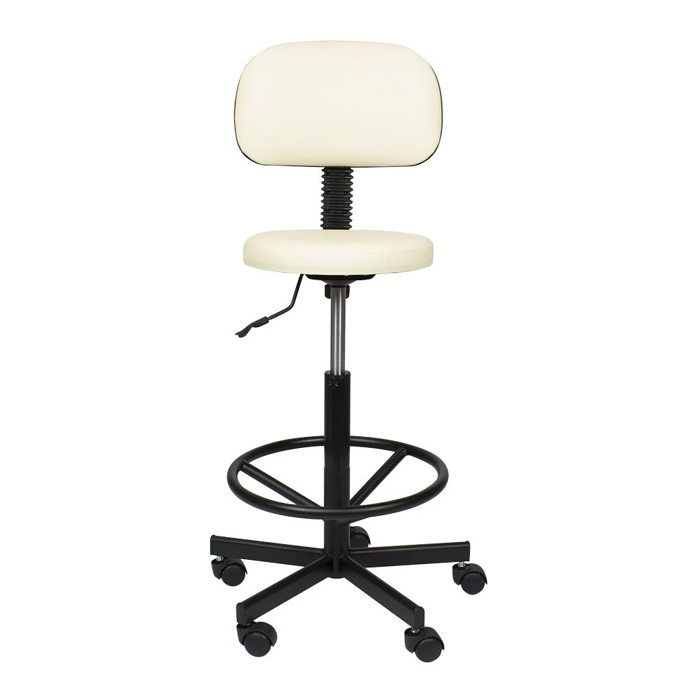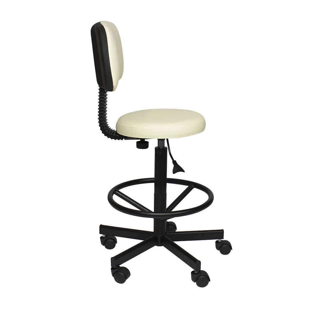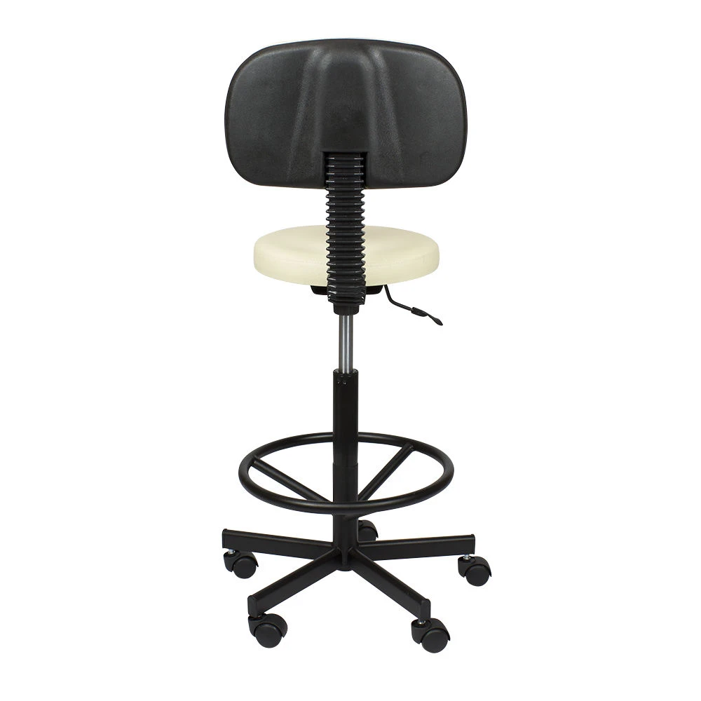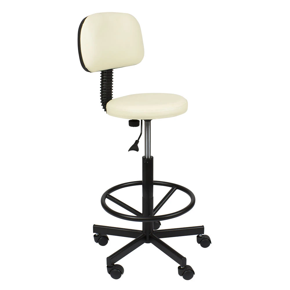 Стул мастера Астек высокий с опорой для ног и спинкой – отличный выбор для сотрудников beauty салонов, которые много рабочего времени проводят на ногах. Он укомплектован мягким круглым сиденьем со спинкой. Учитывая особенности процедур и требования к профессиональному оборудованию, в качестве материала для обшивки используется мягкая влагостойкая экокожа, которая легко очищается, не боится воздействия косметических и моющих средств, устойчива к износу. Купить стул для мастера Астек с высокой посадкой, с опорой для ног и удобной спинкой можно под любую палитру интерьера. На выбор покупателей различные цветовые варианты обивочного материала.
