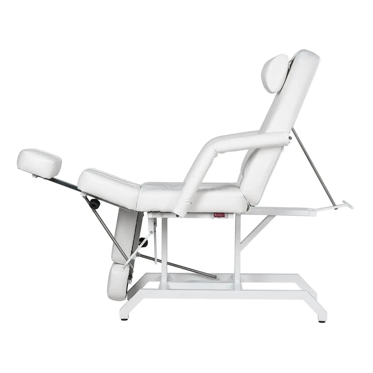 Педикюрное кресло Клио (механика) является универсальным и предназначено для выполнения педикюра и косметологических процедур. Оно установлено на прочный каркас из металла с широким основанием для устойчивости конструкции. Кресло оснащено механизмом, который регулирует угол наклона кресла, это позволяет высоко поднимать ногу для удобства работы мастера и в тоже время обеспечивает комфортное расположение клиента.