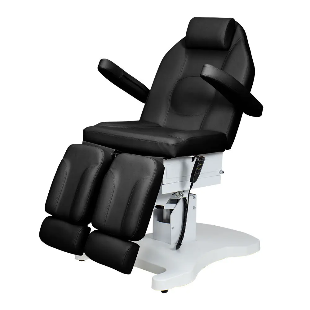 Функционал кресла Оникс-03 дополняет электропривод с тремя моторами для регулирования высоты, положения спинки и наклона сиденья. Высота ножек регулируется механически до горизонтального уровня. Мягкие элементы под стопы легким движением выдвигаются на необходимую длину. Наличие различных регулировок позволяет мастеру подобрать наиболее удобное положение кресла.
