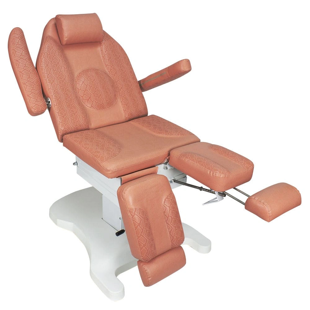 Функционал кресла Оникс-03 дополняет электропривод с тремя моторами для регулирования высоты, положения спинки и наклона сиденья. Высота ножек регулируется механически до горизонтального уровня. Мягкие элементы под стопы легким движением выдвигаются на необходимую длину. Наличие различных регулировок позволяет мастеру подобрать наиболее удобное положение кресла. Купить педикюрное кресло Оникс-03 (3 мотора) можно с размерами: