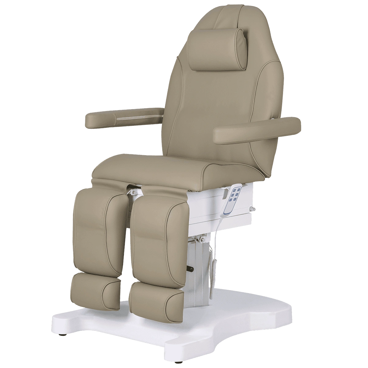 Комфорт педикюрного кресла Шарм-04 на колонне, 3 мотора от магазина МЭДИСОН обеспечивают мягкие детали, выполненные из качественных долговечных материалов: плотного поролона и экокожи. Наша компания предлагает изготовление модели под заказ с обивкой из матовой, глянцевой и текстурной экокожи категорий «Стандарт», «Бизнес», «Премиум», которую можно выбрать в одном цвете или комбинации цветов.
