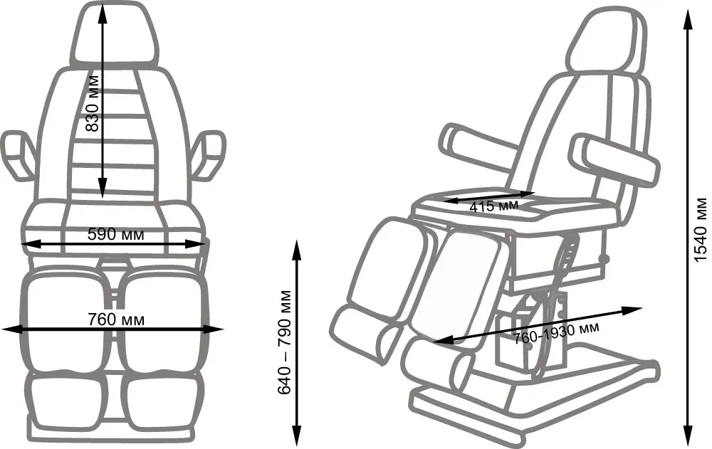 Комплектация: основание, мягкие элементы кресла (сиденье, подножки, подушки под стопы, спинка с подголовником, подлокотники), гидравлика.