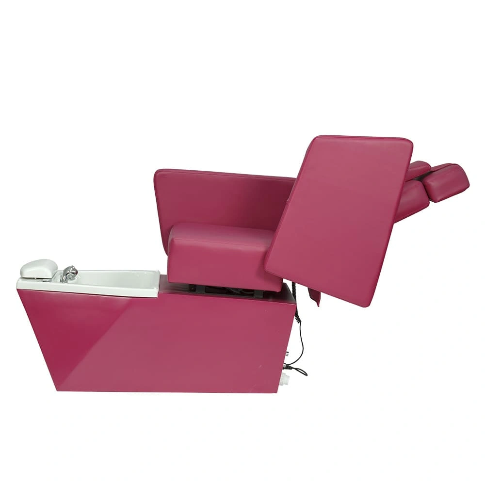 Каркас кресла из металла обеспечивает устойчивость конструкции. Благодаря поднимающимся подлокотникам посетитель без особых усилий сядет в кресло. Ванна выполнена из прочного акрила. В комплект входят сантехнические принадлежности и эффектная ЛЭД подсветка, которая может менять цвета. Обивка кресла выполнена из качественной экокожи, которая легко чистится и не боиться воздействия химических средств.