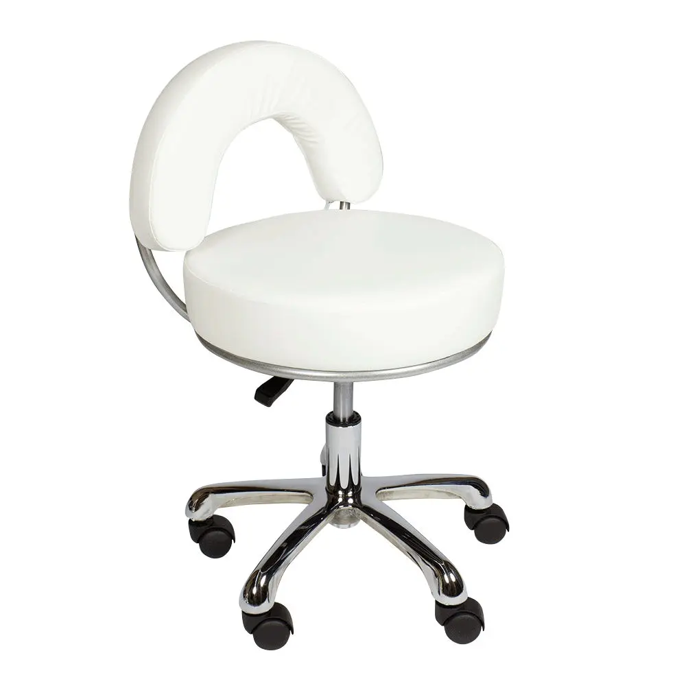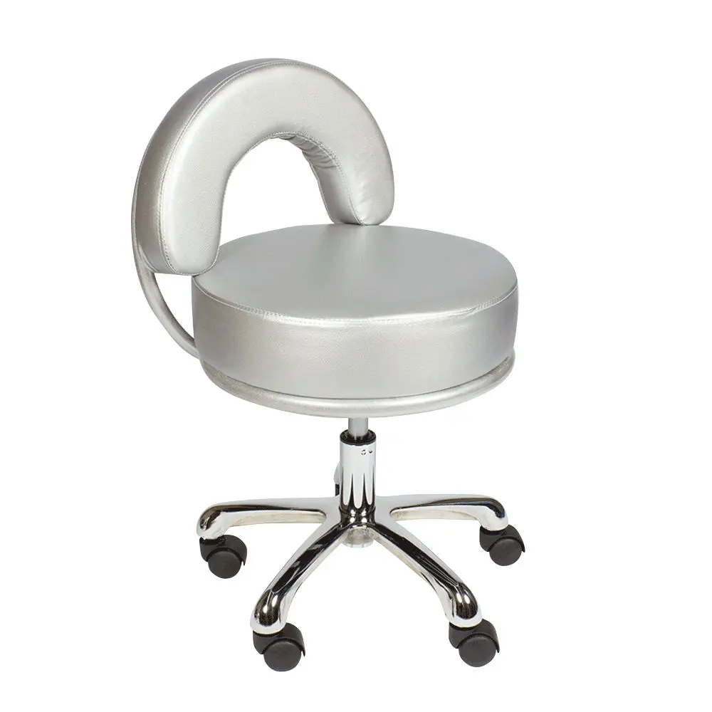Компактная спинка позволит уменьшить напряжение мышц спины во время выполнения процедур, и при этом не будет ограничивать свободу движений, что особенно важно в условиях минимальной площади рабочей зоны. Она крепится к металлическому каркасу, который жестко прикреплен к основанию под сиденьем. Все металлические элементы каркаса защищены от воздействия влаги и дезинфицирующих средств специальным влагостойким покрытием серебристого цвета. Стул мастера МД-2118 с низкой посадкой от магазина МЭДИСОН подойдет косметологам, специалистам педикюрных кабинетов, мастерам по депиляции.