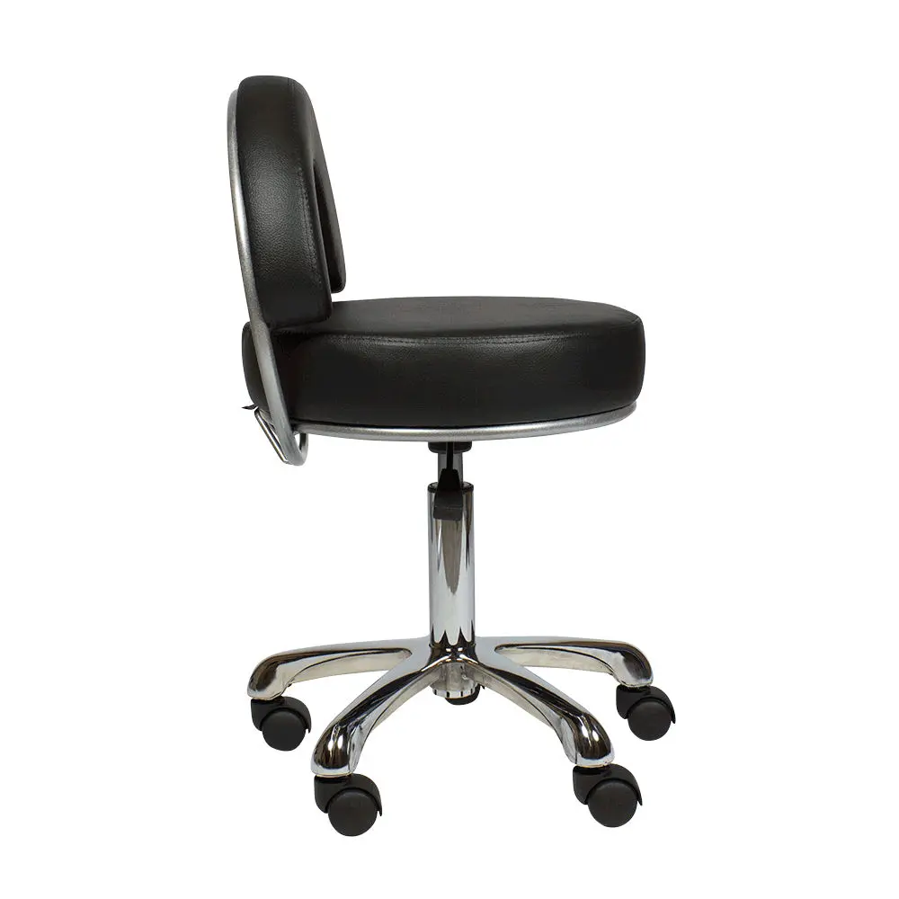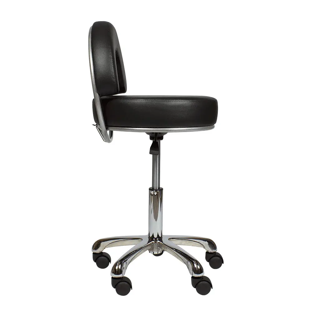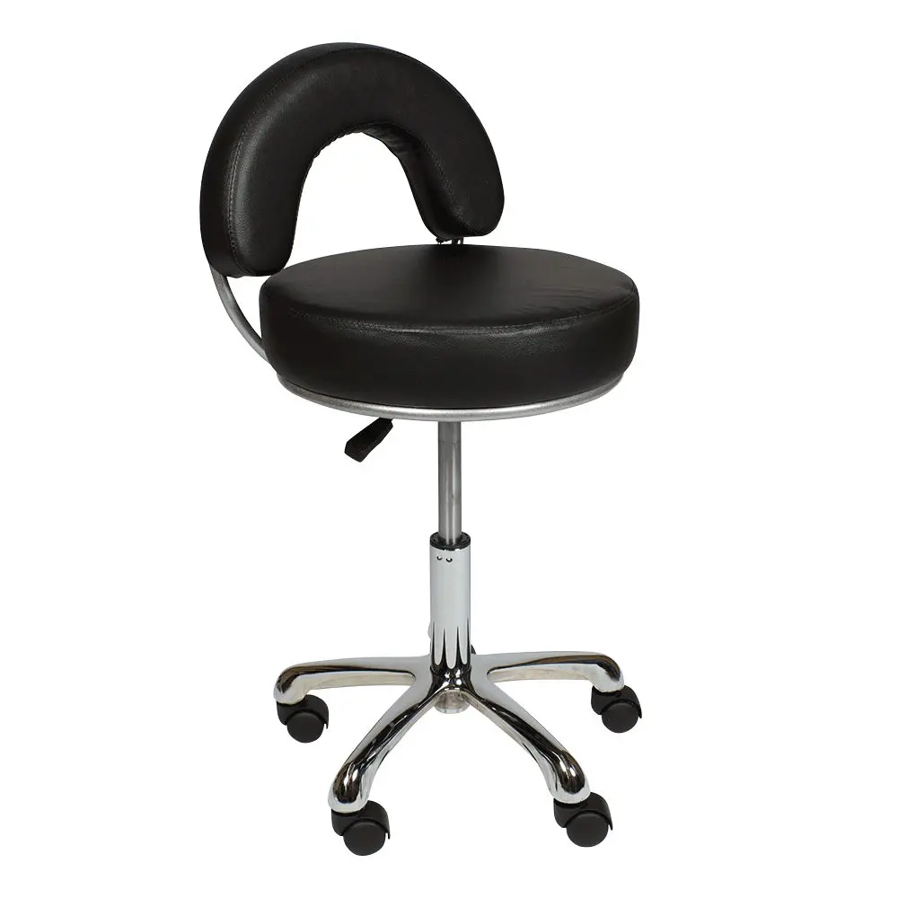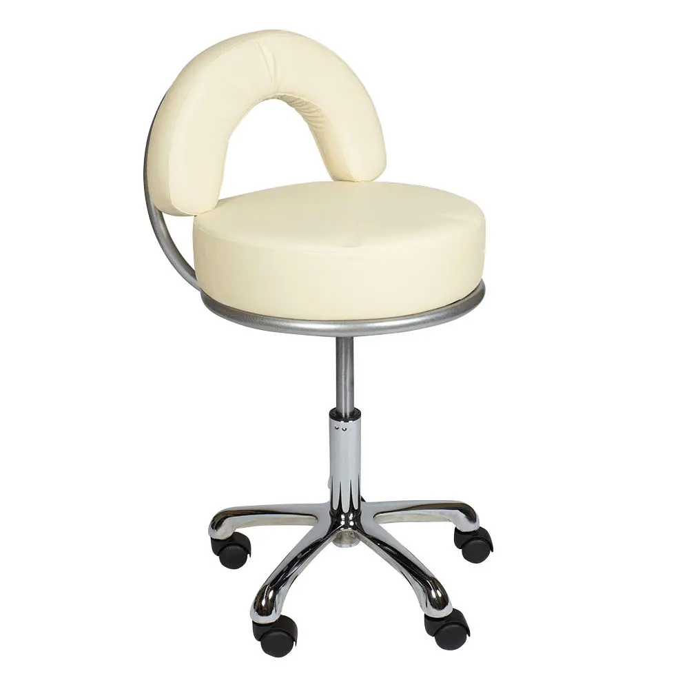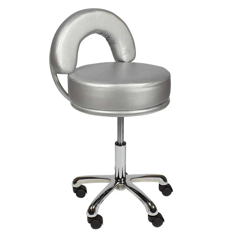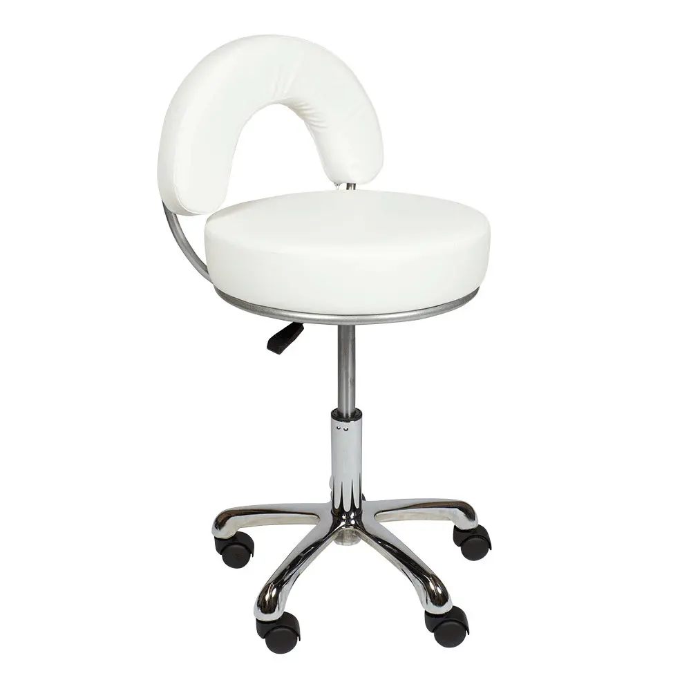 В комплектацию стула входит хромированное пятилучье на колесах из ударопрочного черного пластика. Наличие легко вращающихся колес позволяет мастеру быстро и без усилий перемещаться по помещению, не прерывая рабочий процесс. Основание является очень устойчивым и выдерживает большие нагрузки. Данный стул отлично подойдет мастеру по педикюру и маникюру, визажисту, косметологу, администратору на ресепшене и другим специалистам. Профессиональный стул мастера МД-2118 магазин МЭДИСОН предлагает в цветах складской программы – белом, черном, слоновая кость и серебро.