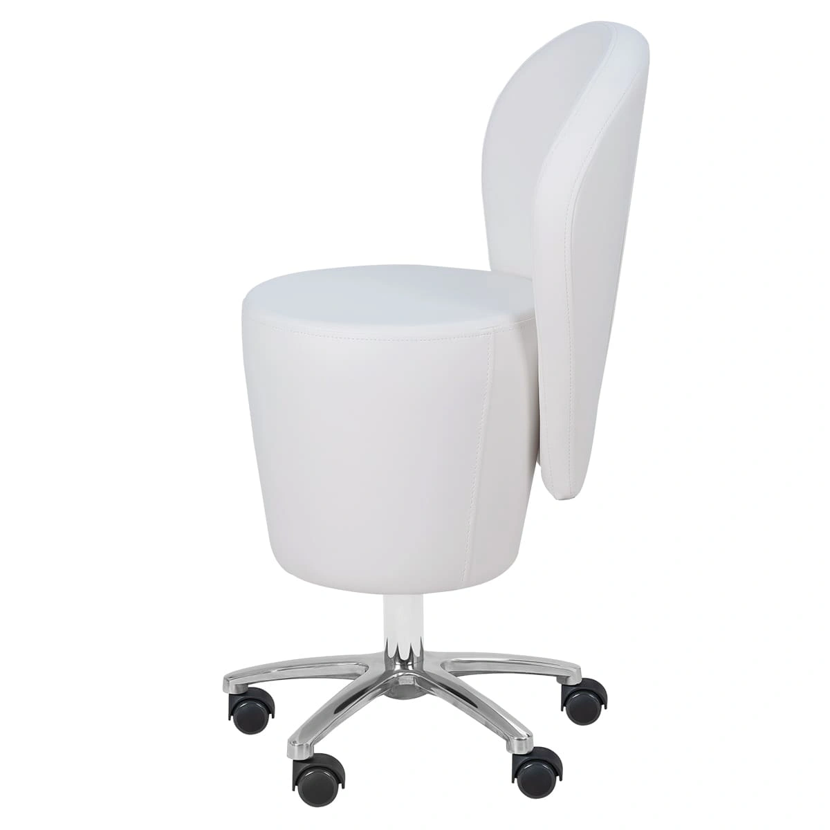 Стул мастера имеет устойчивое хромированное пятилучье с манёвренными колёсам, он без усилий перемещается и не занимает много пространства в салоне. Удобная регулировка высоты на боковой поверхности – можно поднимать/опускать стул, не вставая с него. Идеально подойдёт для косметологических и спа-салонов.